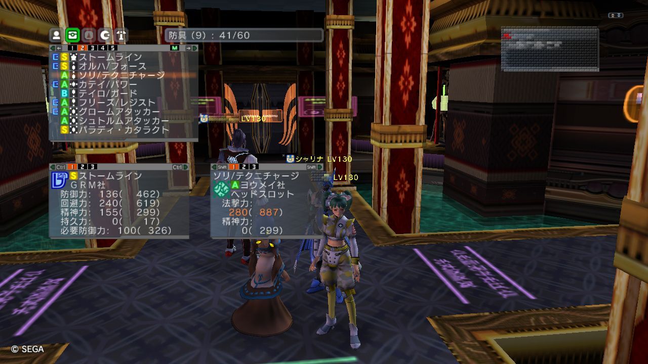 NDの待機所で、ガーメントオーラオーラフィールドをつけている人とショップを利用した時の画像