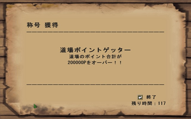 ジェビアはじめました 投稿者: garuda | 2008-12-23 2件のコメント どうも、Garudaです。 本日は、まず、古龍のコイン集めに奔走しました。 ガンランスで出動 ロマン砲でトドメ! 謎の称号をゲット・ω・ その後、コイン集めもそこそこに、次は「アクラ・ジェビア」の討伐に行ってまいりました。 私自身、初めて挑戦するので、猟団の先輩方から部位破壊方法を伝授していただきました。 目指すは、レア素材の「灰晶蠍の血晶石」です これが血晶石なんですが、これを破壊するにはかなり苦労しました。 失敗もありましたが、それなりの回数、レア素材の獲得に成功することできました\(^o^)/ HR150到達(・ω・)